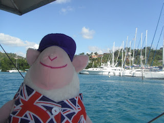 Oh hello dear friends from nearby and far far away, I do so hope you have not forgotten me, I do remain your dear and loyal friend, Sherbet Sheep, forever and always and for always and forever. As you can see I have not been able to write my stories lately as I am sailing in the middle of the sea .The sea is a bit wobbly as I am sitting here so my writing may also be wobbly. I am just relaxing and listening to the waves roll by and Oh, I must tell you how lovely it is to watch flying fish leaping into the air right in front of my eyes. I really did not realise they had wings, they seem to be a cross between a fish and a bird, a fish that flies or a bird that swims ! What fun ! I am watching out for dolphins every day too but I think they must be a little bit shy as I have not managed to meet any yet . Maybe they are a little bit afraid of me. I cannot blame them as I am sure they have never seen a Sherbet Sheep before , especially not in the middle of the ocean . Anyway I am getting pink ear tops from the hot sun so I am now going to find a big hat and put it on . Love from Sherbet x